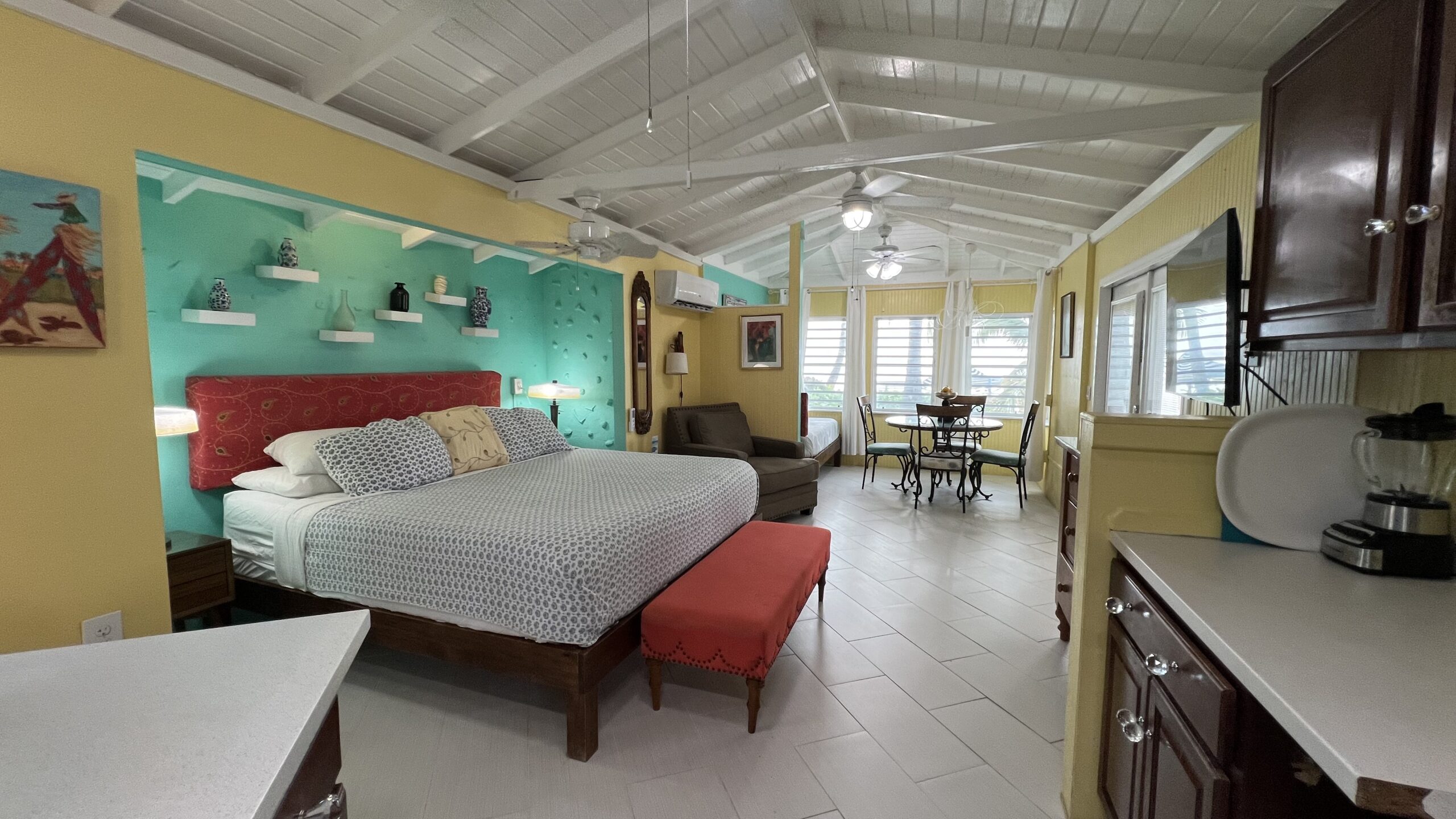 Without the hustle and bustle of a large resort, Cottages by the Sea has slowly evolved over the past 8 decades to be one of the most popular hotels in the Caribbean. Our beachfront cottages offer full kitchens (except Coco bean and Sylvia), open floor plans, comfortable beds, private bathrooms, easy beach access, cool tropical breezes, private patios, colorful decor, keyless entry authentic artwork and air conditioning.