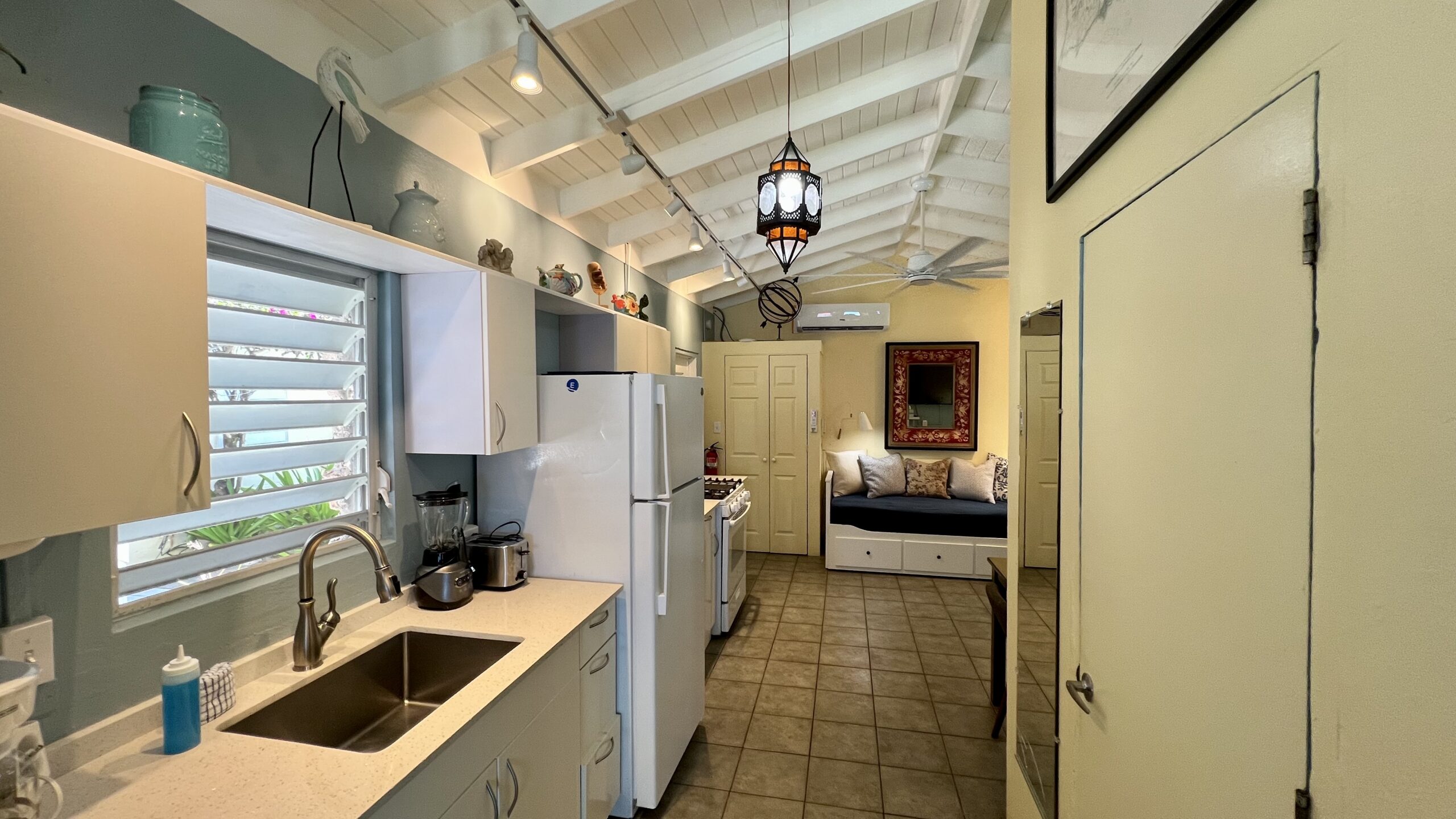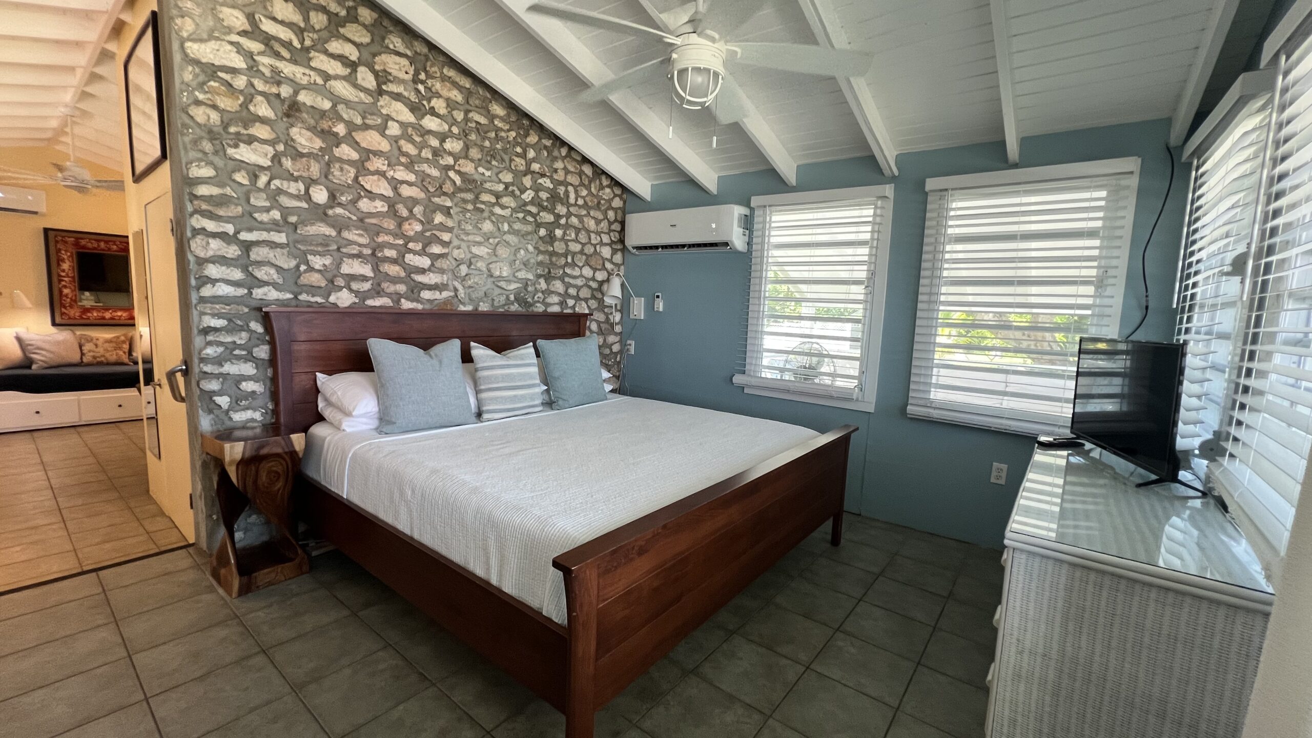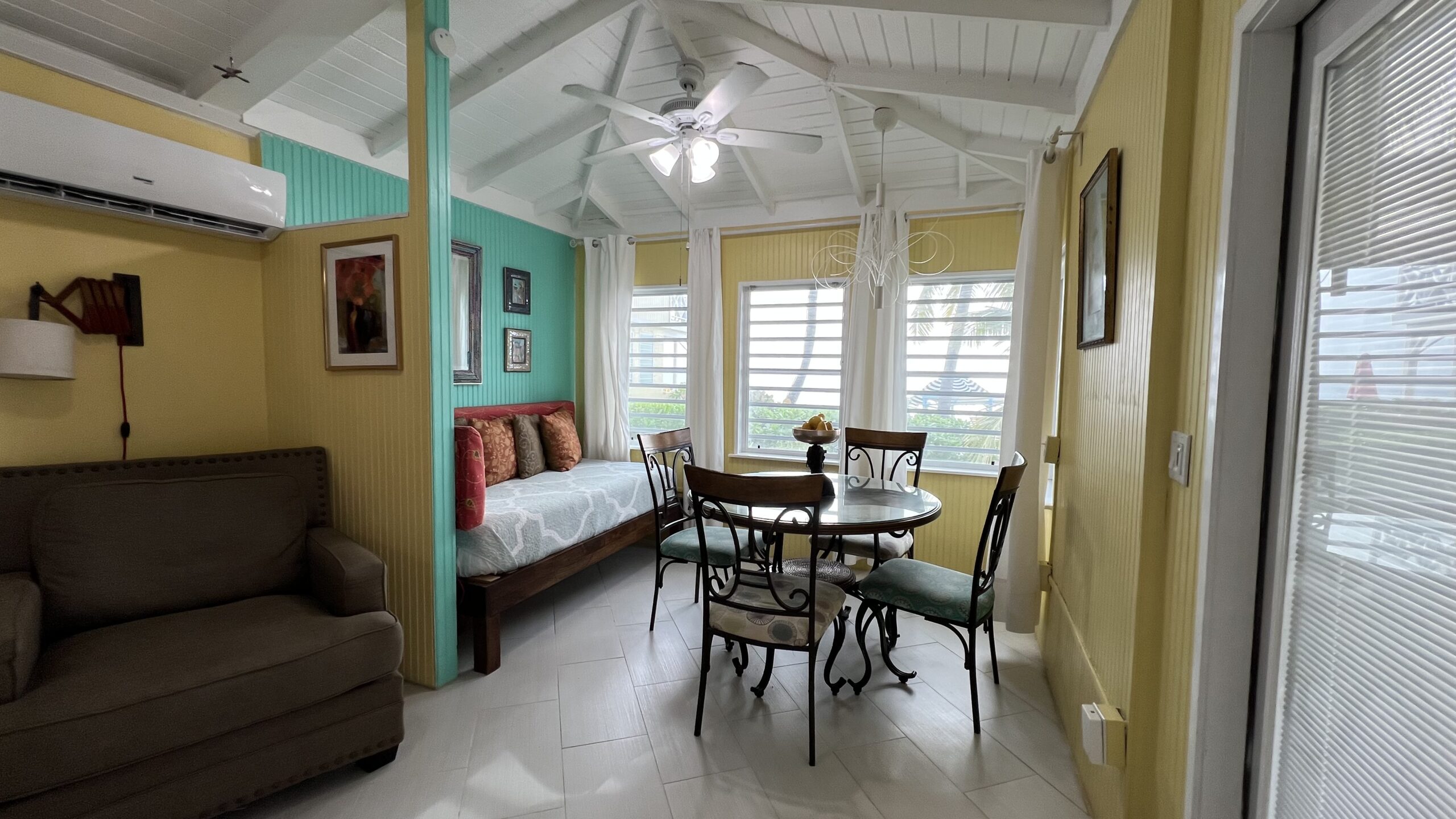 Enjoy swimming and snorkeling in the warm, calm, crystal clear waters of the Caribbean Sea, or bask in the sun while lounging in one of our beach chairs. Enjoy hunting for sea glass, BBQ grilling, kayaking, or reading a book from our guest library. Enjoy your nightly cocktail while gathering with other guests on one of our common patios to enjoy the sunset and while waiting for the elusive “green flash”